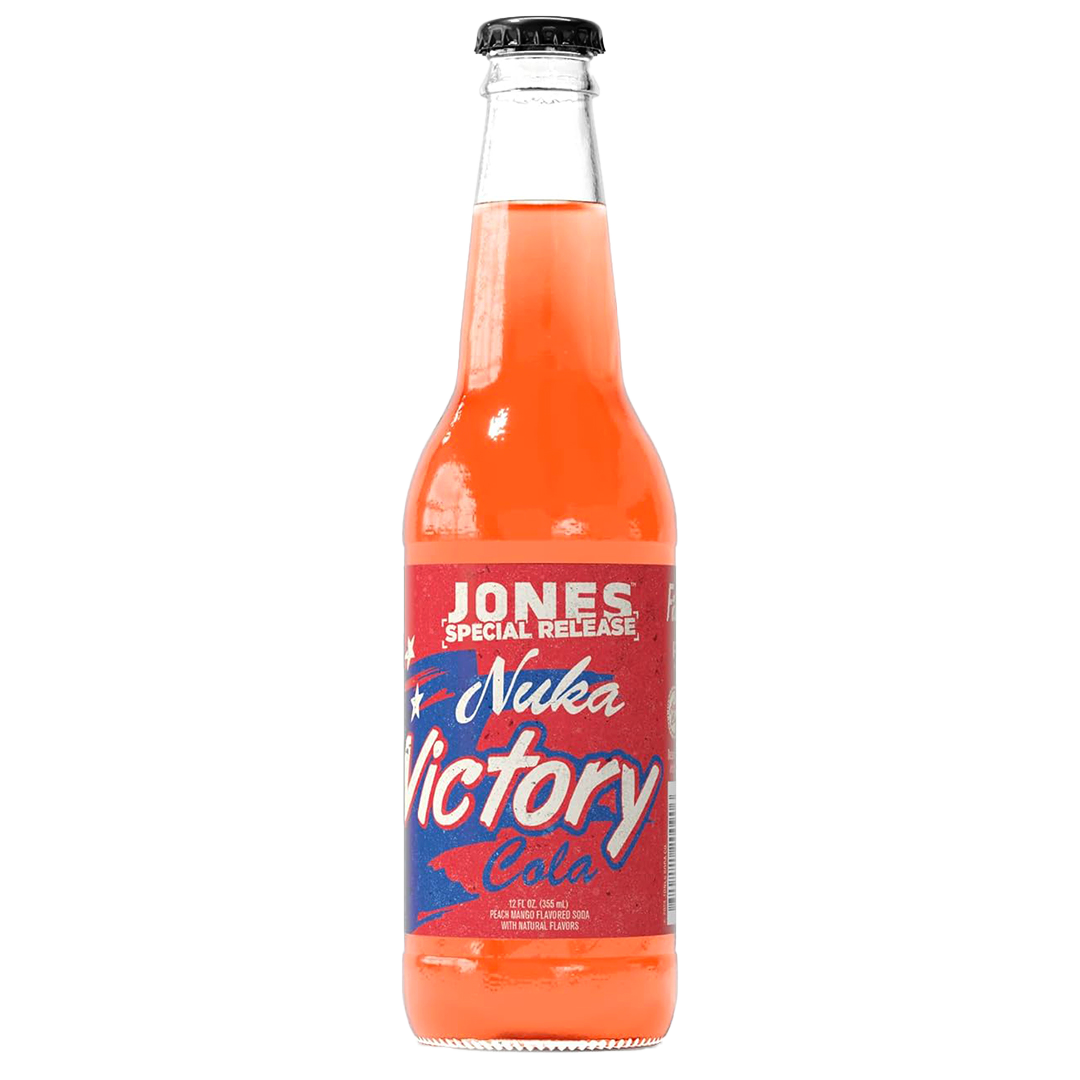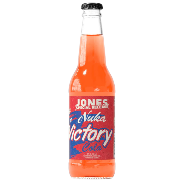 Bold, crisp, and unmistakably iconic, Jones Nuka Victory Cola is a special release inspired by the legendary Fallout video game series. Bursting with a classic peach mango flavor and lively carbonation, this craft soda blends nostalgic refreshment with a collectible-worthy twist. Fun, flavorful, and full of retro-futuristic charm, it’s the perfect pick for fans of the video game and TV series looking to sip a piece of Fallout-inspired history.